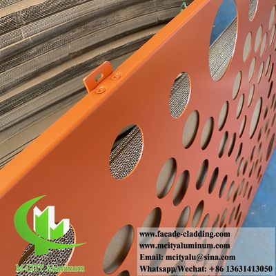 Εξωτερική μεταλλική οθόνη με διάτρηση στρογγυλές τρύπες μοτίβα που καλύπτονται με σκόνη πορτοκαλί χρώμα