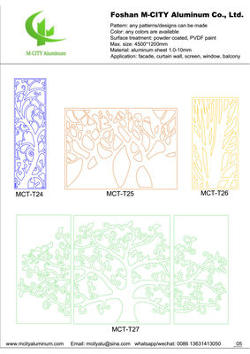 Αλουμινίου κούφιο πάνελ θα χρησιμοποιηθεί για πρόσοψη, φράχτη, ταράτσα, οροφή, οθόνη, παράθυρο, κλπ. Μπορείτε να επιλέξετε τα σχέδια από τον κατάλογο μας ή να μας στείλετε το σχέδιο ή την εικόνα, μπορούμε να το σχεδιάσουμε για σας.
